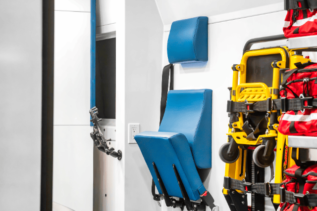 - Bulkhead with pass-through: Keeps the cab and patient area separate while still supporting communication.