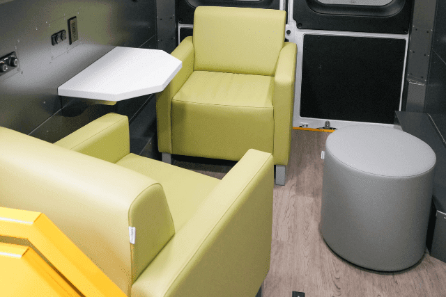 • Warm interior wraps: The inside doesn’t look like a medical van. It feels like a quiet nook where someone can speak freely and feel at home.